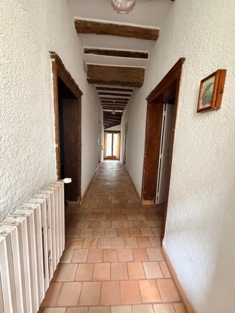 En RDC : un grand couloir desservant : salon, salle à manger, cuisine, pièce et WC.